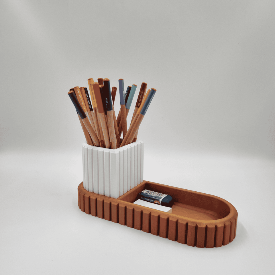 Çift Renkli Desenli Kalemlik